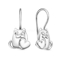 Серьги детские из серебра с эмалью родированные - Кошки