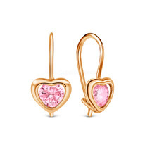 Серьги детские из золочёного серебра с корундом цв.рубин, фианитами и родировани