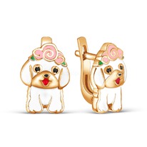 Серьги детские из золочёного серебра с эмалью и фианитами - Собачки