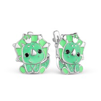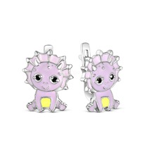 Серьги детские из серебра с эмалью и фианитами родированные - Львята