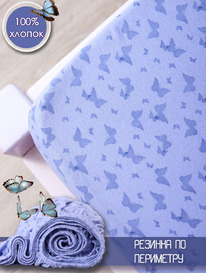 ВЛАДЛЕН Простыня на резинке трикотажная Бабочки сиреневые