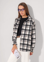 Блузка из текстильного полотна поплин, прямого силуэта на пуговицах с отложным воротником. По борту планка с пуговицами, по спинке кокетка. Длинный рукав со спущенной линией плеча. По низу рукава притачной манжет с пуговицей. Низ изделия фигурный.