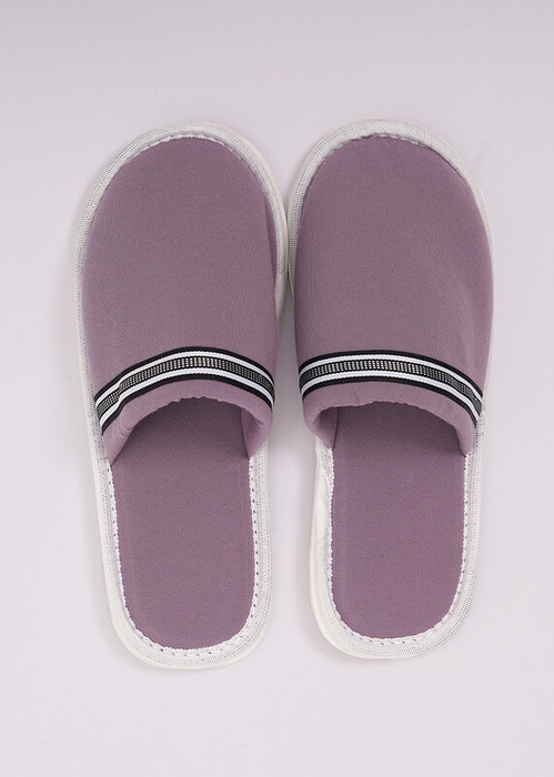 Домашние тапочки с закрытым носом из трикотажного полотна пике, сверху тесьма. Толстая подошва.