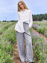 Свободные женские брюки со стрелкой и боковыми карманами из плотного гладкого трикотажа интерлок. Застежка на кнопку. Низ обработан плоскими швами.
