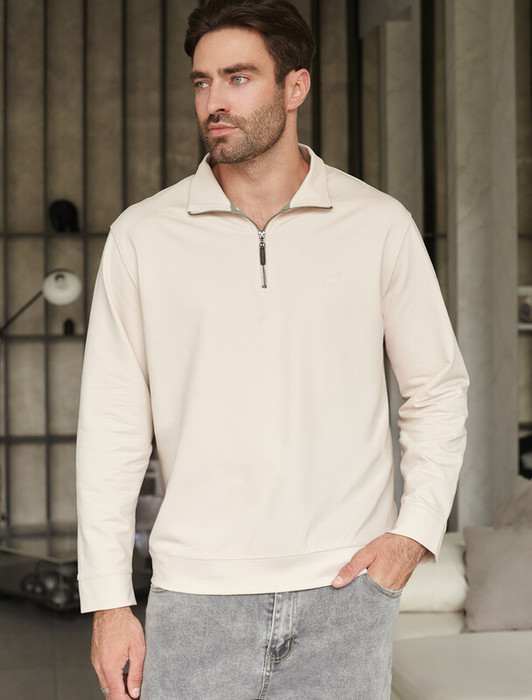 09.04 Vilatte Свитшот с воротом стойкой на молнии из эластичного футера двухнитк