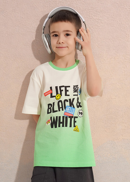 Стильная футболка с градиентным принтом- то, что нужно для активного отдыха и прогулок с друзьями. Модель выполнена из 100% хлопка и дополнена эластичной горловиной. Создавай яркие образы, сочетая футболку с шортами из новой коллекции!