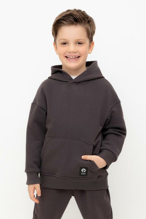 Толстовка с капюшоном для мальчика из петельчатого футера трехнитки. Манжеты и пояс выполнены из эластичного полотна. Спереди удобный карман-кенгуру.