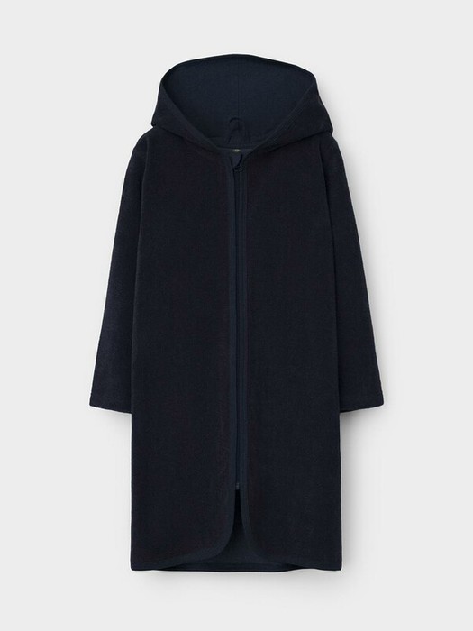 Халат на молнии с капюшоном. Изготовлен из мягкого махрового полотна, произведённого из натурального хлопка. В капюшоне подклад из высококачественного гладкого трикотажа супрем. Края обработаны эластичным кантом. Все трикотажные полотна производятся в соответствии с нормами швейцарского сертификата ЭкоТекс.