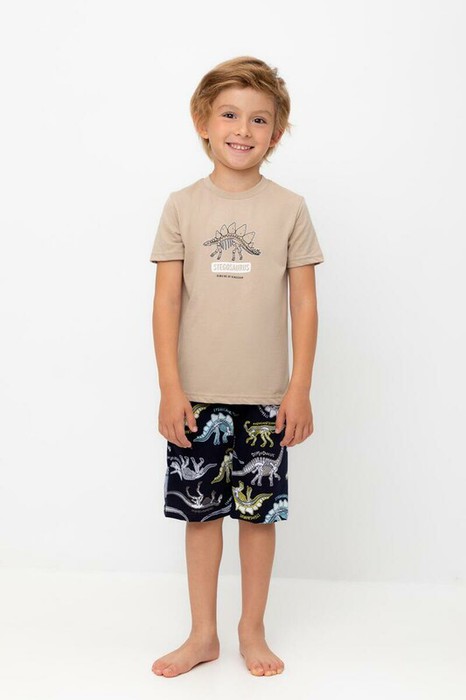 22.04 Crockid пижама дет К 1528/темно-бежевый,цветные динозавры