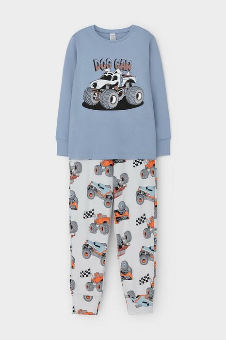 Трикотажная пижама из натурального хлопка. Джемпер с длинными втачными рукавами и брюки с эластичной резинкой в поясе. Мягкие манжеты на рукавах и по низу брюк. Оригинальная набивка и принт выполнены из стойких текстильных гипоаллергенных красителей. Изделие сохраняет цвет и форму после многократных стирок. Все трикотажные полотна производятся в соответсвии с нормами швейцарского сертификата ЭкоТекс.