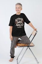 Трикотажная пижама из натурального хлопка. Джемпер с длинными рукавами с эластичными манжетами. У брюк эластичный пояс на резинке. Оригинальная набивка и принт выполнены из стойких, гипоаллергенных текстильных красителей. Пижама сохраняет цвет и форму после многократных стирок. Все трикотажные полотна производятся в соответствии с нормами Швейцарского сертификата ЭкоТекс.