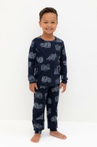 Тёплая пижама с начёсом из натурального хлопка. Джемпер с длинными спущенными рукавами и брюки с эластичной резинкой в поясе. Мягкие манжеты на рукавах и по низу брюк. Оригинальные набивка и принт выполнены из стойких гипоаллергенных текстильных красителей. Изделие сохраняет цвет и форму после многократных стирок. Все трикотажные полотна производятся в соответствии с нормами швейцарского сертификата ЭкоТекс.