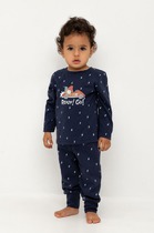 Трикотажная пижама из натурального хлопка. Джемпер с длинными втачными рукавами и брюки с эластичной резинкой в поясе. Мягкие манжеты на рукавах и по низу брюк. Оригинальная набивка и принт выполнены из стойких текстильных гипоаллергенных красителей. Изделие сохраняет цвет и форму после многократных стирок. Все трикотажные полотна производятся в соответсвии с нормами швейцарского сертификата ЭкоТекс.