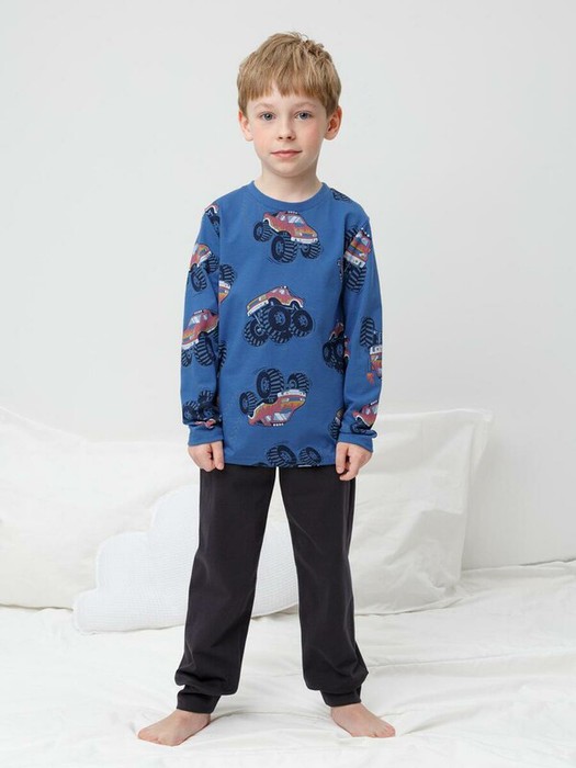 Трикотажная пижама из натурального хлопка. Джемпер с длинными рукавами. У брюк эластичный пояс на резинке, эластичные манжеты. Оригинальная набивка выполнена из стойких, гипоаллергенных текстильных красителей. Пижама сохраняет цвет и форму после многократных стирок. Все трикотажные полотна производятся в соответсвии с нормами Швейцарского сертификата ЭкоТекс.