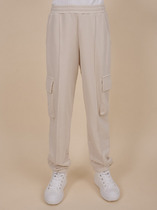 Джоггеры для мальчика объемные по всей длине. Низ собран на широкую внутреннюю резинку. Пояс на широкой резнке с внутренней регулировкой объема шнуром. Боковые карманы расположены в швах. По переду – вертикальные строчки, имитирующие стрелки.