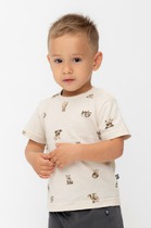 Футболка для мальчика. Комфортная, умеренного оверсайз-объёма со спущенным плечом. Вырез горловины обработан эластичной рибаной (ткань в рубчик) — она отлично держит форму, не растягивается, при этом ребёнку удобно надевать и снимать футболку. Перевод спереди: беги, перевод на спинке: из «А» в «Б».