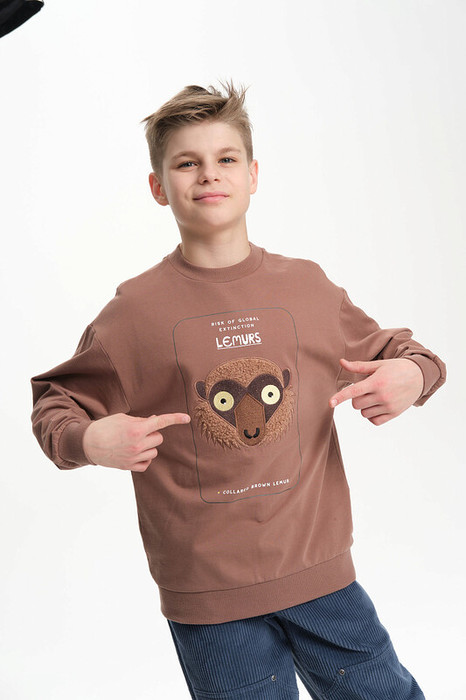Свитшот без начеса из материала футер-петля. Манжеты и низ изделия из рибаны. Толстовка весенняя украшена аппликацией из бербер-флиса (он же тедди-флис, барашек, чебурашка), а также надписью. Перевод надписи: "risk of the global extinction lemurs" - риск глобального вымирания лемуры, "collared brown lemur" - ошейниковый коричневый лемур. В составе ткани преобладает высококачественый хлопок — спортивная кофта приятна на ощупь и прекрасно пропускает воздух. Тонкую кофту можно носить круглый год. Широкая размерная сетка подойдет как для малыша так и для подростка.