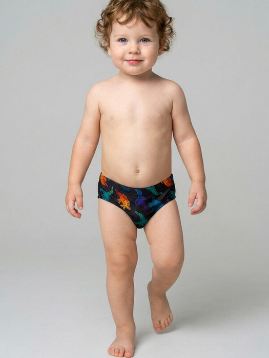 Плавки детские, прилегающего силуэта для мальчика. Изготовлены из эластичного трикотажа, с подкладкой для большего комфорта. Ткань устойчива к солнцу и солёной воде, благодаря UF-защите сохраняет насыщенность цвета и структуру волокон. В поясе — удобная резинка и регулируемый шнурок.