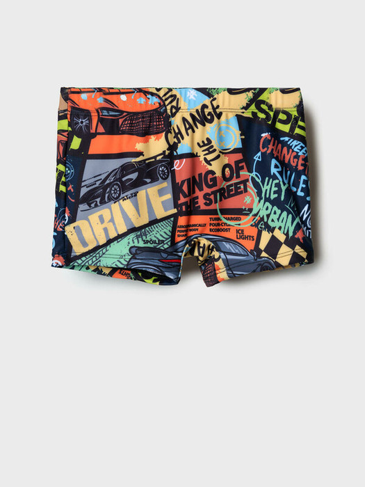 Плавки-шорты детские средней длины, прилегающего силуэта для мальчика. Изготовлены из эластичного трикотажа, с подкладкой для большего комфорта. Ткань устойчива к солнцу и солёной воде, благодаря UF-защите сохраняет насыщенность цвета и структуру волокон. В поясе — удобная резинка и регулируемый шнурок.