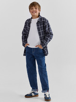 Синие джинсы выполнены из эластичного денима. Внутренняя сторона джинс из мягкого флиса, обеспечит тепло и комфорт на целый день. Есть дополнительная фиксация талии при помощи внутренней резинки. Изделие дополнено высококачественной металлической фурнитурой с логотипом бренда.