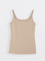 Майка из эластичного трикотажного полотна рибана по фигуре на широких бретелях. Круглый вырез горловины.