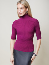 09.04 Vilatte Водолазка тонкой вязки в рубчик из хлопка с нейлоном D34.198 пурп