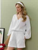 Шорты женские свободного силуэта из ткани. На детали переда карманы с отрезным бочком.