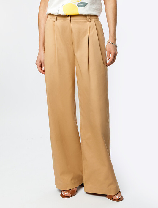 Совместные покупки Симферополь Женская одежда Брюки — 09.04 Vilatte Брюки-палаццо из хлопка с защипами D24.268 темно-бежевый