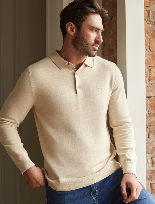 Совместные покупки Симферополь Мужская одежда Джемперы, свитеры — 09.04 Vilatte Джемпер-поло из хлопка с нейлоном U39.017 бежевый меланж