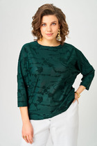 Джемпер с вырезом лодочкой и прозрачными рукавами создает женственный и элегантный образ. Тело джемпера черного цвета выполнено из плотного вискозного трикотажа, обеспечивающего комфорт, в то время как рукава из тонкой сетки создают стильный контраст. Глубокий вырез лодочка подчеркивает линию плеч и создает элегантный силуэт. Идеальный выбор для стильных образов!