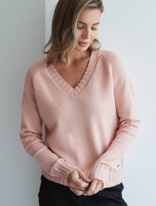 09.04 Vilatte Джемпер с V-вырезом из пряжи с кашемиром D39.360 пудровый