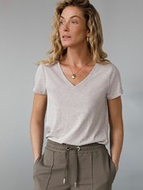 09.04 Vilatte Базовая футболка из премиального хлопка с V образным вырезом D49.
