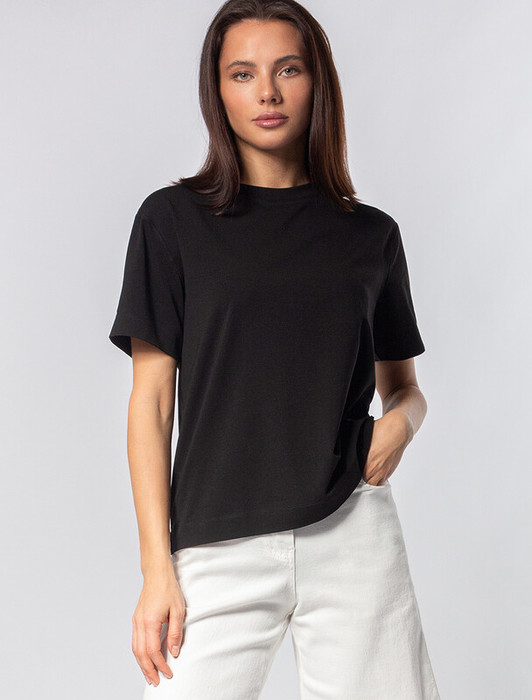 Футболка выполнена из премиального хлопка. Базовая модель, которая хорошо будет сочетаться в гардеробе с любым низом и любым дополнительным верхом вне зависимости сезона. Эластан в составе способствует формоустойчивости и меньшей сминаемости. Изделие украшено логотипом бренда.