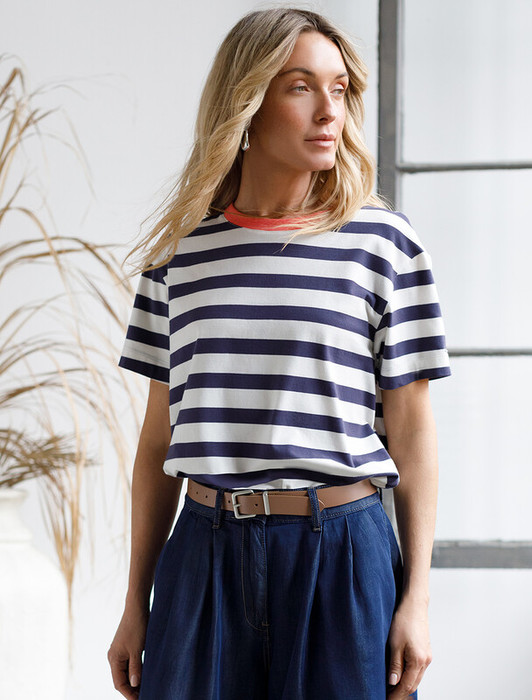 Совместные покупки Симферополь Женская одежда Футболки — 09.04 Vilatte Футболка из премиального хлопка с эластаном D49.989 белый-т.синий