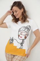 Футболка выполнена из трикотажа в широкий рубчик. Модель с круглым вырезом.  Эластичный хлопковый трикотаж сидит по фигуре, не сковывает движений и очень комфортный в носке. Фактура вертикальных полос визуально стройнит и вытягивает силуэт. Базовое изделие хорошо впишется в любой гардероб. Идеально подходит для многослойных образов.