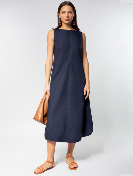 21.04 Vilatte Платье-баллон на кулиске внизу из плотного поплина D22.200 темно-с