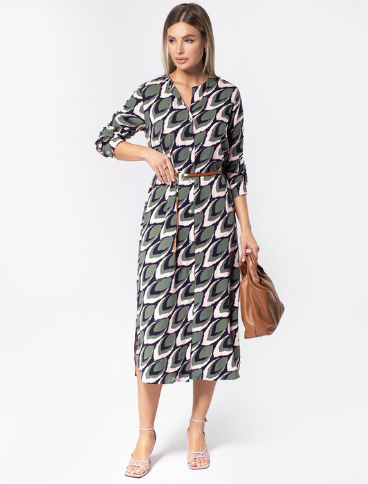 09.04 Vilatte Платье из премиальной вискозы-твила D22.189 оливковый-пудровый