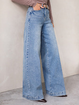 09.04 Vilatte Джинсы трубы широкие с декоративной стиркой из эластичного денима