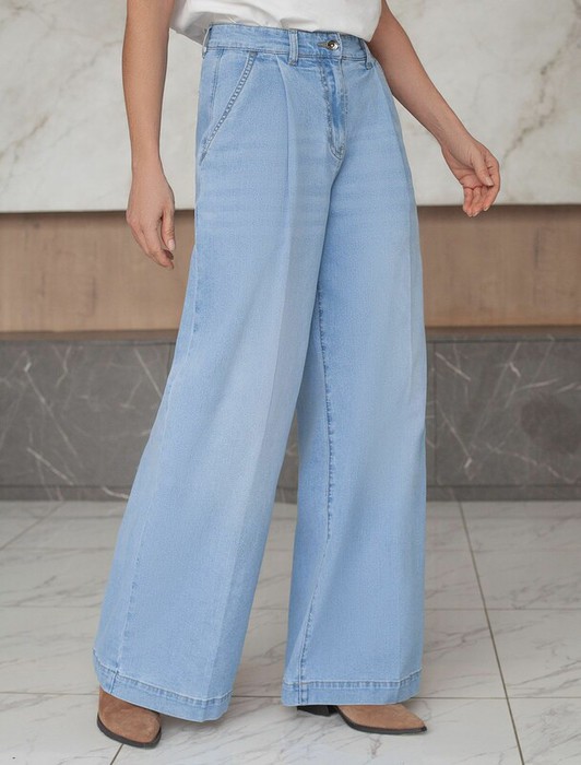 Совместные покупки Симферополь Женская одежда Джинсы — 09.04 Vilatte Широкие джинсы с защипами из эластичного денима D54.307 голубой