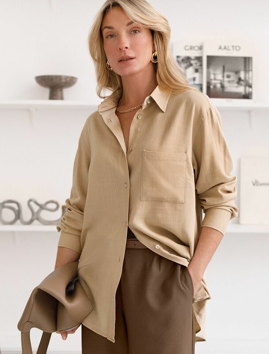 Совместные покупки Симферополь Женская одежда Блузки, рубашки — 21.04 Vilatte Свободная удлиненная блузка с карманом изо льна с вискозой D29.357