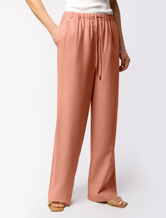 Брюки свободного кроя выполнены из плотного лиоцелла. Модель дополнена карманами и поясом с эластичной резинкой и регулируемым шнурком с золотистой фурнитурой. Ткань изделия отлично держит форму, плавно драпируется и не просвечивает. В теплое время года приятно охлаждает кожу. Добавление синтетических волокон в составе изделия, предотвращает сминаемостьи поддерживает формоустойчивость. Брюки сочетаются в костюме с топом D23.063, блузкой D29.266, D29.267 и жилетом D27.002