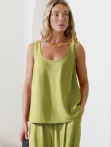 14.04 Vilatte Свободный топ с U-вырезом изо льна с вискозой по косой D23.076 сал