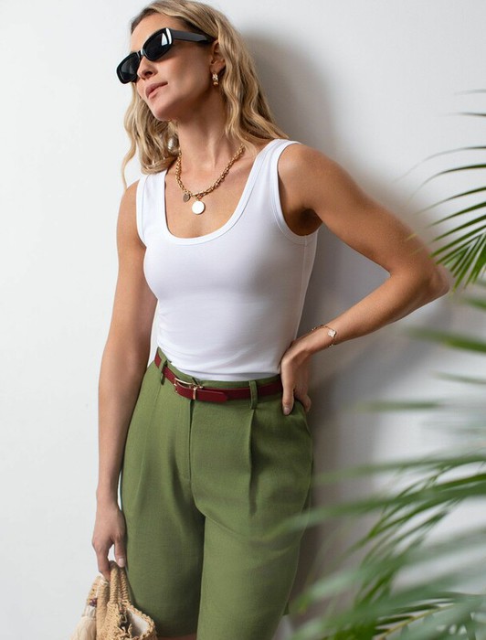 Совместные покупки Симферополь Женская одежда Майки, топы — 21.04 Vilatte Топ облегающий из премиального хлопка с эластаном D43.238 белый