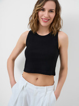Топ выполнен из плотного лиоцелла. Удлиненная модель с трендовым ассиметричным низом. Ткань изделия отлично держит форму, плавно драпируется и не просвечивает. В теплое время года приятно охлаждает кожу. Добавление синтетических волокон в составе изделия, предотвращает сминаемостьи поддерживает формоустойчивость. Топ сочетается в костюме с брюками D24.261, D24.265, D24.267, юбкой D24.261, шортами D28.057, а также очень эффектно с белыми шортами и джинсами.