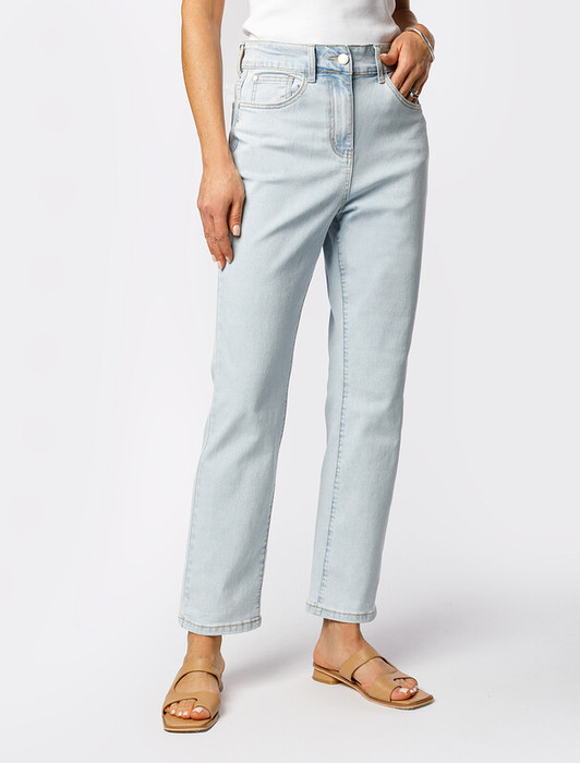 Джинсы выполнены из эластичного денима. Укороченная, плотно прилегающая модель гармонично дополнит любой образ с рубашкой и жакетом, футболкой и лонгсливом. Изделие очень хорошо тянется и не ограничивает движения. На поясе брендированный патч.