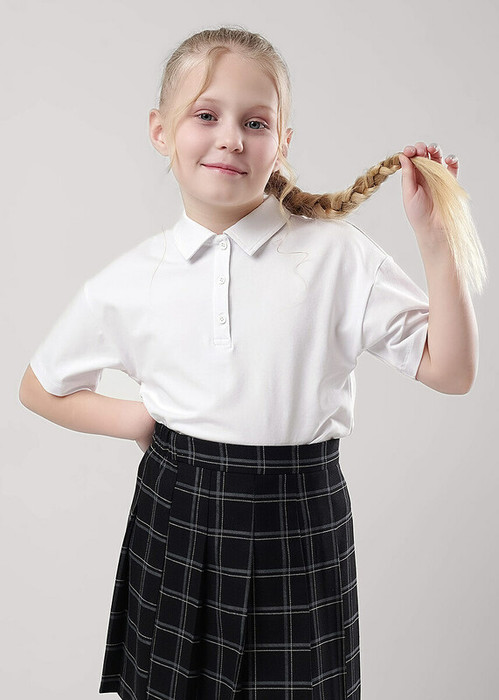 Базовое поло с коротким рукавом станет отличным дополнением к вашему гардеробу! Модель с отложным воротником и планкой на пуговицах. Поло отлично подойдет для создания классных повседневных и школьных образов