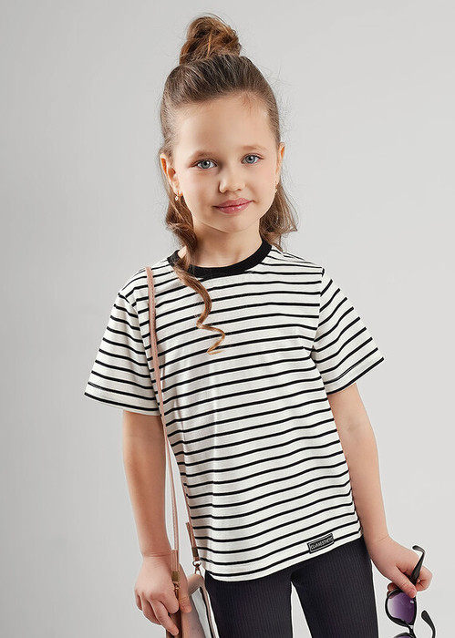 12.04 Clever Футболка детская для девочки CLE 867272кдн молочный/чёрный