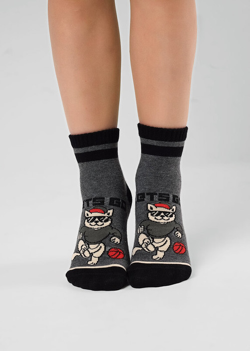 Носки детские с игровым рисунком кота и надписью ""LETS GO"".