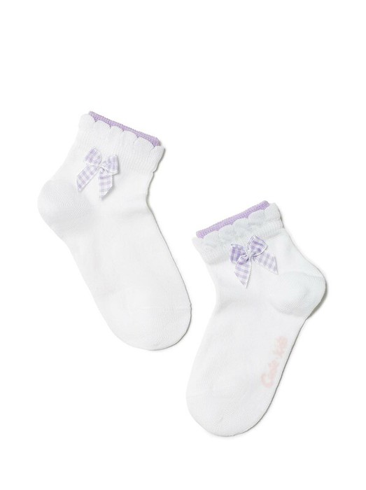 Детские носки из хлопка, с декоративным волнистым бортом "пикот", 2 пары: 7С-90СП - 1 пара, с рисунком; 7С-100СП - 1 пара, на паголенке с декоративными элементами "бантики". Для девочек.