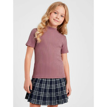 Вязаный джемпер для девочки из мягкой полушерстяной пряжи. Высокий воротник с отворотом хорошо защищает от холода. Изделие сохраняет форму и стойкий цвет после многочисленных стирок.